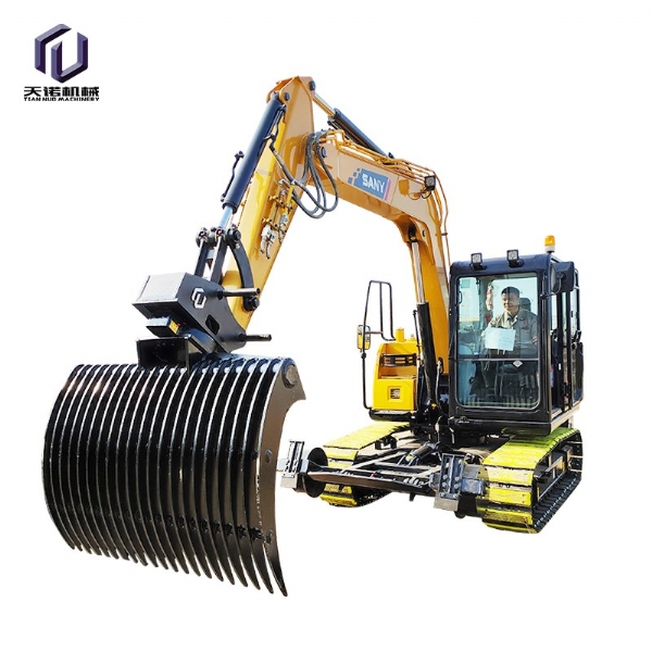 铲斗夹:又名食指夹,截取含量约2.5吨,在小规模木头、棒状物、条状物的截取下面有特点,适用做市政工程建设、再次拆除房屋、矿井等大部份数施工作业场景的标准,最适合8-50吨挖土机用到;