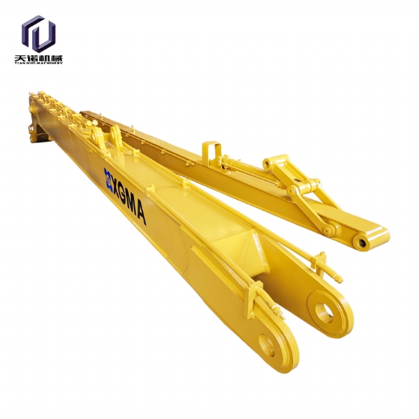 25-34吨位挖掘机加长臂,可加长到20米,其配置为:挖斗1个、铲斗油缸1支、销轴6支、 高压软管4条、黄油管3条、连杆总成1套、运输连杆1套、加长大臂(11米)、加长小臂(9米)。